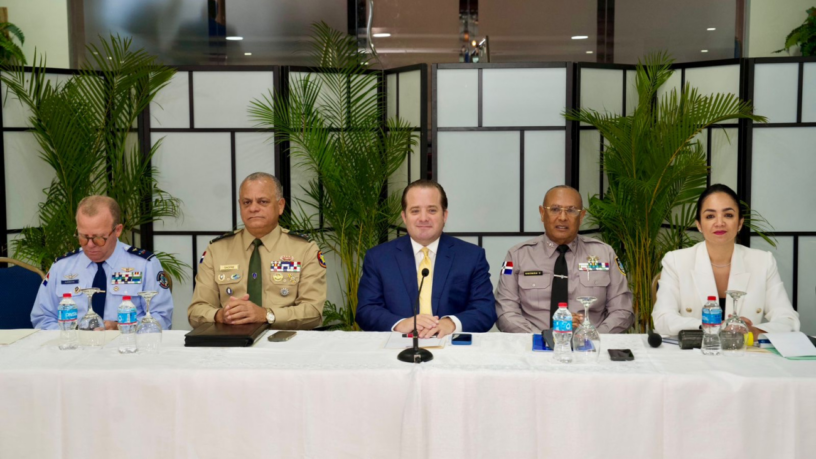 En compañía del ministro Paliza se encuentran la procuradora general de la República, Yeni Berenice Reynoso; el director de la Policía Nacional, mayor general, Ramón Antonio Guzmán Peralta; el comandante de la Fuerza Aérea, mayor general piloto Floreal T. Suárez Martínez, y el director de Asuntos Internos de Migración, general Juan Carlos Vicente Pérez.