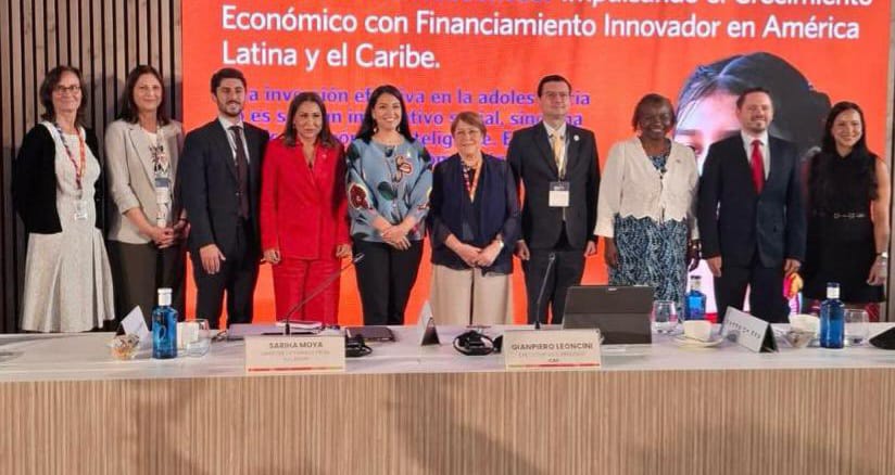 Mayra Jiménez, también participó en el panel “Invertir en adolescentes: desbloqueando el crecimiento económico a través de financiamiento innovador en América Latina y el Caribe”, en el que reafirmó el compromiso de la República Dominicana con el desarrollo integral de las adolescentes y la erradicación del embarazo en la adolescencia.