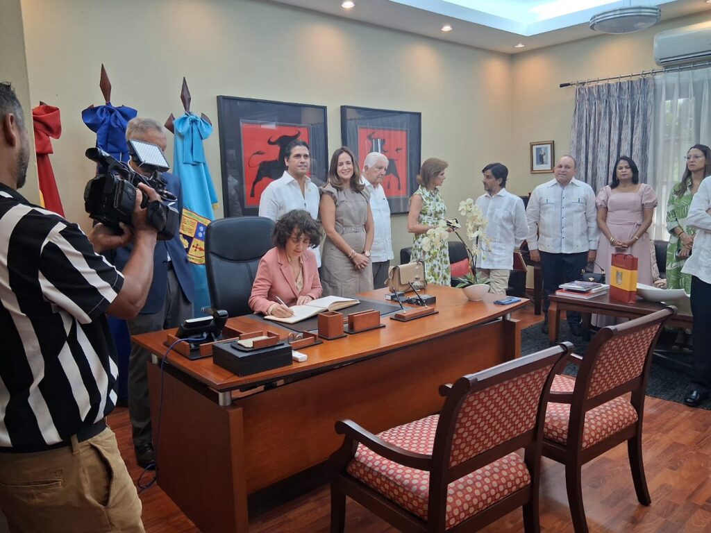 Embajadora de España en República Dominicana Lorea Arribalzaga Ceballos firma el libro de visitas en Centro Español.