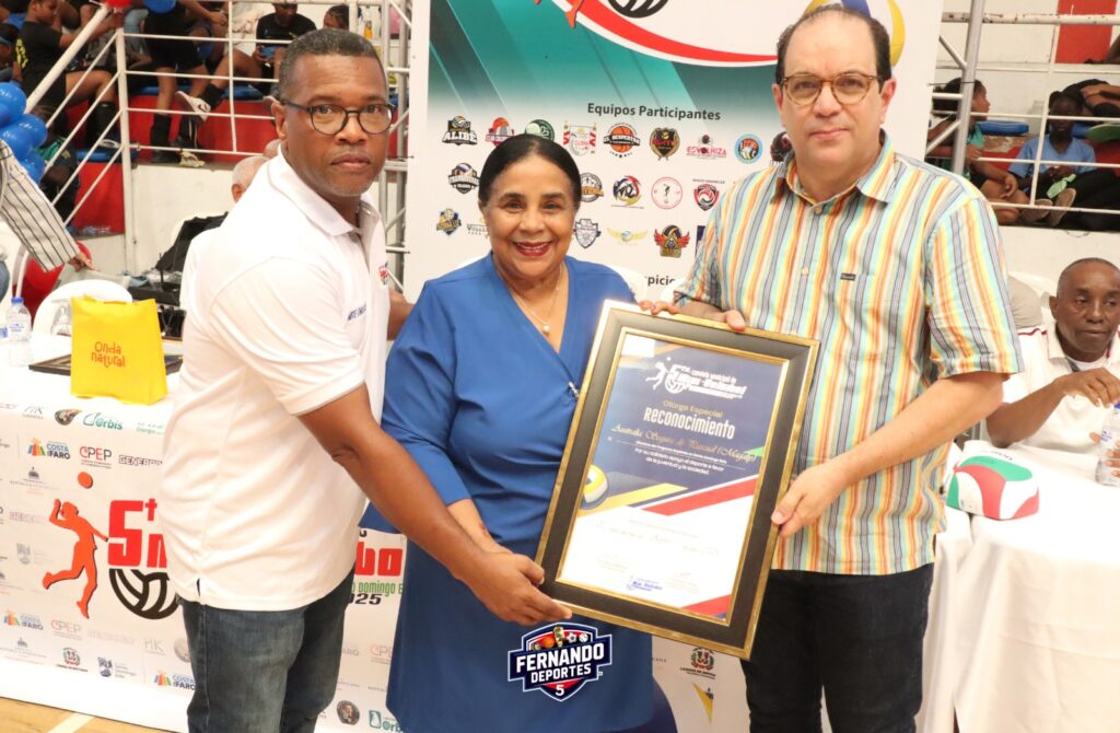 Los organizadores entregaron placas de reconocimiento a la doctora Heida Joaquín Tineo, al ministro de Deportes, representado por el viceministro De la Mota; a la directora de Supérate, Gloria Reyes; a Cuchito Pérez, entre otras personalidades que se han distinguido por su apoyo al deporte.