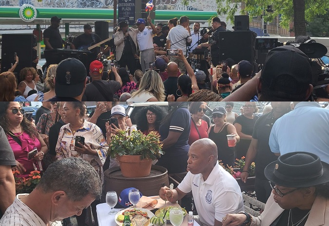 NUEVA YORK.- Más de mil personas acudieron este sábado al show «Calles de Verano» en el Alto Manhattan, con la presencia del alcalde Eric Adams, quien fue recibido con vítores y slogan: «Cuatro más», «Eric-Eric Adams» y «Vuelve y vuelve».