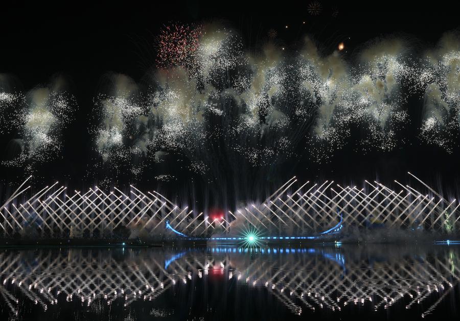 (250807) -- CHENGDU, Aug. 7, 2025 (Xinhua) -- Fireworks are seen during the opening ceremony of the World Games 2025 in Chengdu, southwest China's Sichuan Province, on Aug. 7, 2025. (Xinhua/Chen Yichen)