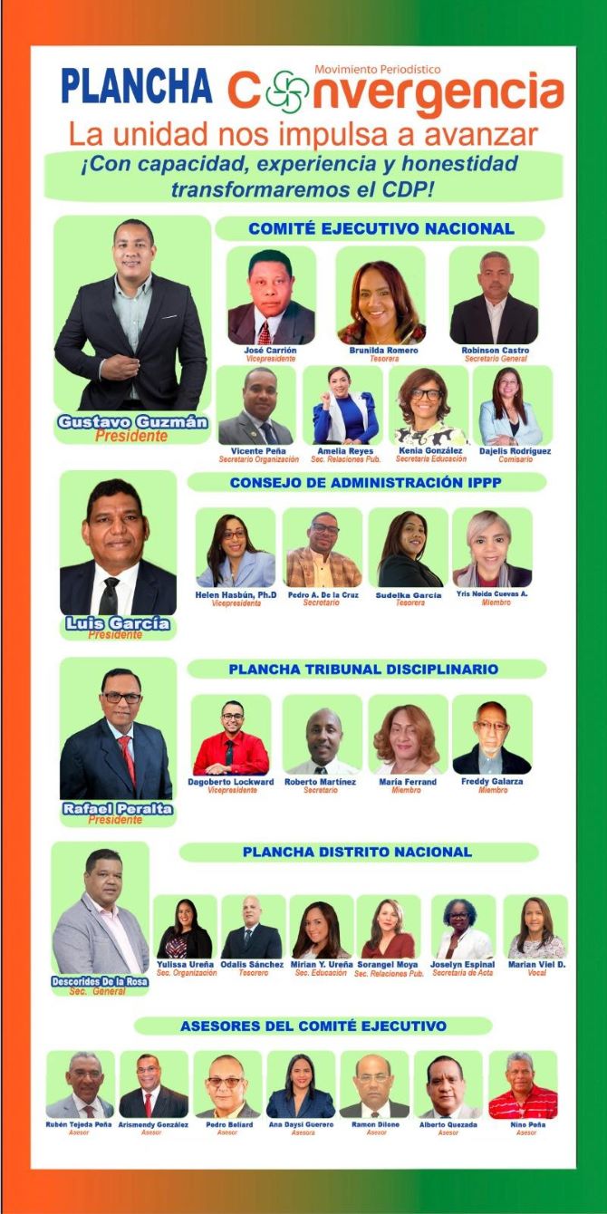 Expone el Movimiento Convergencia que ha conformado una plancha que incluye experiencia, juventud, capacidad y ética, “con una visión clara de lo que hay que hacer para transformar al CDP”.