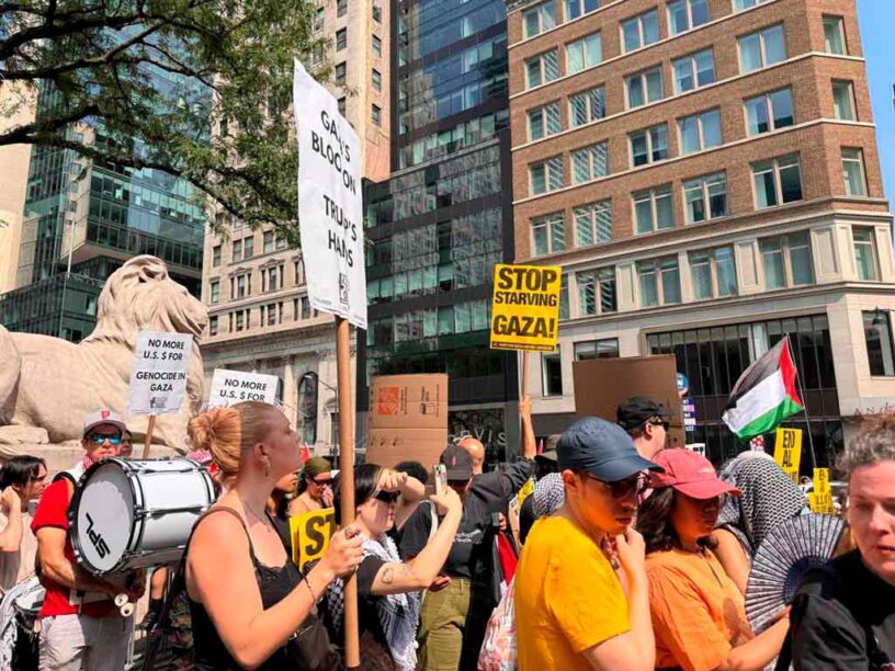 Washington, 16 ago (Prensa Latina) Miles de personas se unieron hoy en la ciudad estadounidense de Nueva York a la Marcha Masiva por la Humanidad para exigir el fin del genocidio israelí y la hambruna en Gaza.