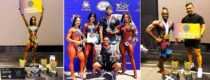 GUAYAQUIL, Ecuador (18-08-2025).- Los atletas dominicanos, entre los principales del continente Americano, triunfaron de nuevo en Miss & Mister América IFBB Cup, cargaron con dos tarjetas pro IFBB, varios premios absolutos, copas, trofeos y medallas, al triunfar el pasado domingo, en el Miss & Mr América IFBB Cup, de Guayaquil, Ecuador.