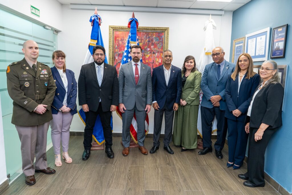 Santos se reunió con Michael Jensen, director senior de Asuntos del Hemisferio Occidental del Consejo de Seguridad Nacional, Joseph M. Humire, subsecretario de Defensa para Asuntos del Hemisferio Occidental y Patricia Aguilera, encargada de Negocios en la Embajada de los Estados Unidos en Santo Domingo.