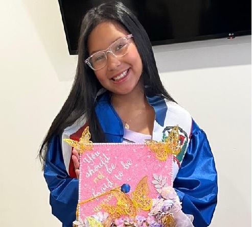 Nació en la Gran Manzana, pero proclama su dominicanidad más que su madre, Judith Jiménez y su abuelo William Jiménez, quisqueyanos que gritan a cuatro vientos sus raíces. Es Zoey Jiménez, quien a sus 10 años ya difunde con su talento la cultura dominicana, poniendo en alto la bandera tricolor con sus destacadas actuaciones en el baile, canto y pintura, ramas artísticas, sobre todo como bailarina, arte que cultiva desde los cuatro años en Steps Ahead Dance Studios. Debido a su gran amor por la pintura, una de sus obras fue seleccionada entre 350 exponentes, para estar plasmada en el banner de la escuela S.T.A.R Leadership Academy, en donde acaba de graduarse con honores de sexto grado, representando el liderazgo de todos los estudiantes. Así es que, si usted la ve por ahí participando como talento en shows, club de artes, public speaking y música, como lo hace de costumbre, dígale: «Zoey, usted es un valor dominicano en NY».