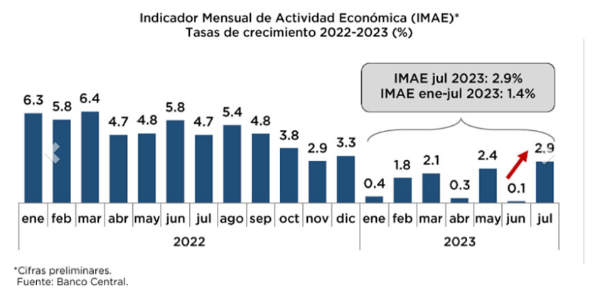 Con este resultado el crecimiento acumulado promedio del IMAE en ene-jul 2023 se ubica en 1.4 %