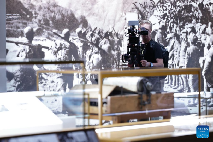 BEIJING, 27 agosto, 2025 (Xinhua) — Un periodista graba videos durante su visita al Museo de la Guerra de Resistencia del Pueblo Chino contra la Agresión Japonesa, en Beijing, capital de China, el 27 de agosto de 2025. Cerca de 200 periodistas acudieron el miércoles al Museo de la Guerra de Resistencia del Pueblo Chino para realizar visitas y entrevistas. Los periodistas participantes provenían de más de 130 medios de comunicación nacionales e internacionales de más de 60 países y regiones. (Xinhua/Zhang Yuwei)