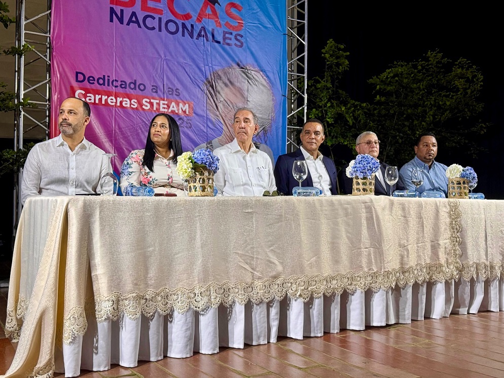 Posterior al encuentro con los medios, las autoridades se trasladaron al Teatro Don Bosco, escenario donde se realizó el acto oficial de entrega de las becas. La mesa de honor estuvo integrada por el ministro Franklin García Fermín, el senador Carlos Gómez, el alcalde de Moca, Guarocuya Cabral, el diputado Robinson Santos, el alcalde Fermín Muñoz, y la encargada de Becas Nacionales, Lianny Portorreal.