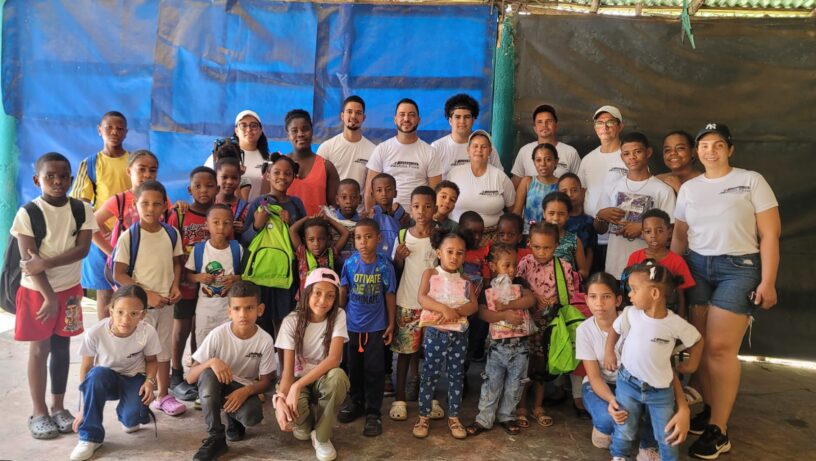 La actividad, realizada en el municipio de Santo Domingo Norte, se convirtió en una verdadera fiesta comunitaria, donde familias enteras celebraron la oportunidad de iniciar el año escolar con los materiales necesarios.