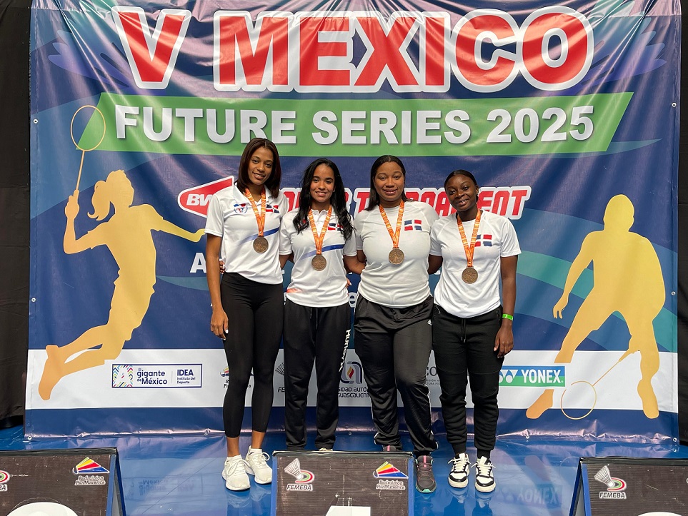 AGUASCALIENTES, México, 1 de septiembre de 2025.– La selección dominicana de bádminton conquistó tres medallas de bronce en el “México Future Series Aguascalientes 2025”, logrando una sobresaliente actuación en el torneo que concluyó el fin de semana y reunió a atletas de 12 países de América, Europa y Oceanía.