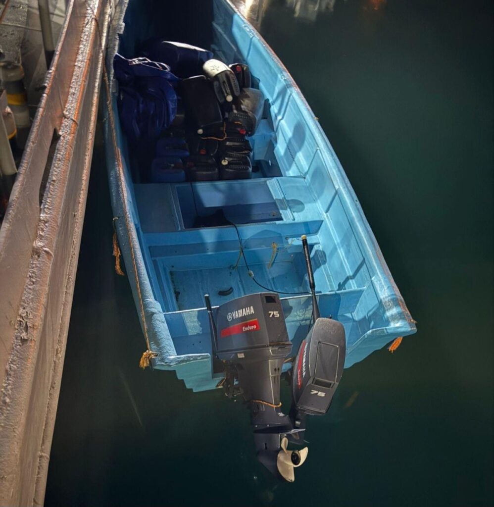«A bordo de la embarcación, que según informes habría llegado a costas dominicanas procedente de la Guajira, entre Colombia y Venezuela, fueron arrestados dos dominicanos y se ocuparon además 02 motores fuera de borda de 75 caballos de fuerza cada uno, 25 garrafones de combustibles, un lona, agua, comestibles, entre otras evidencias.