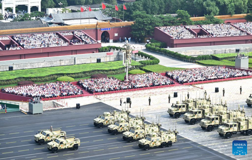 BEIJING, 3 sep (Xinhua) — El equipo de apoyo informático de China fue desvelado en el desfile militar del Día de la Victoria celebrado hoy miércoles en la Plaza Tian’anmen. La formación incluyó vehículos de computación en la nube, inteligencia digital, redes aire-tierra e información integrada. Estos equipos pueden establecer rápidamente nuevos tipos de sistemas cibernéticos para apoyar operaciones conjuntas.