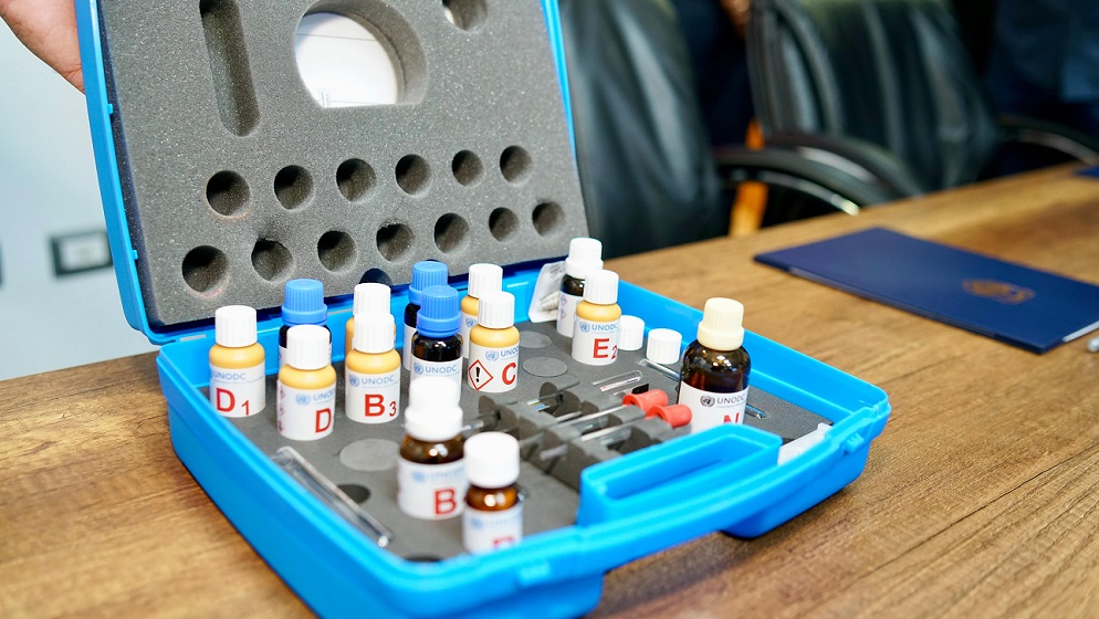 como parte inicial de la implementación del convenio, la DNCD entrega a la DIGEMAPS dos (02) kits de análisis colorimétricos de la Oficina de las Naciones Unidas contra la Droga y el Delito (UNODC), distribuidos de la siguiente manera:
