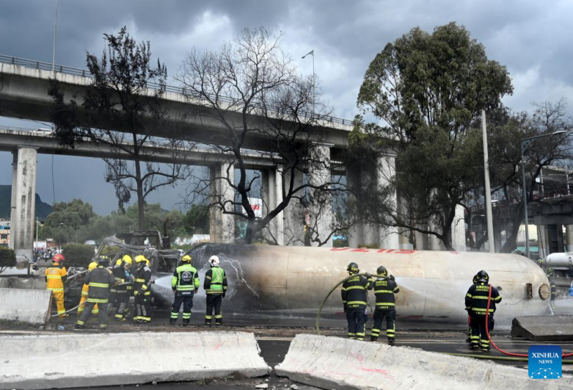 CIUDAD DE MEXICO, 10 septiembre, 2025 (Xinhua) — Bomberos trabajan en el sitio donde se registró la volcadura y explosión de una pipa de gas LP (licuado de petróleo), en la Ciudad de México, capital de México, el 10 de septiembre de 2025. Al menos 57 personas lesionadas, 19 de ellas en estado de gravedad, es el saldo preliminar de un incendio derivado de la volcadura y explosión de una pipa de gas LP en el oriente de la Ciudad de México el miércoles, informaron autoridades locales. (Xinhua/Karen Alpide)