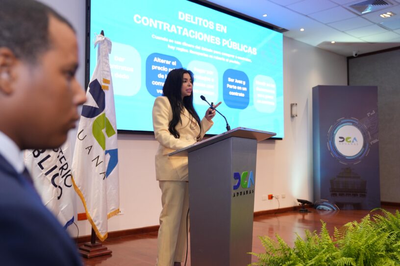Santo Domingo, R.D.- La Dirección General de Aduanas (DGA) es la primera institución pública que recibe a la procuradora general de la República, Yeni Berenice Reynoso, para la conferencia sobre el nuevo Código Penal, en virtud de las recomendaciones impartidas por el presidente de la República, Luis Abinader, en un Consejo de Gobierno, con la finalidad de conocer las nuevas figuras establecidas en la nueva norma, tras su promulgación.