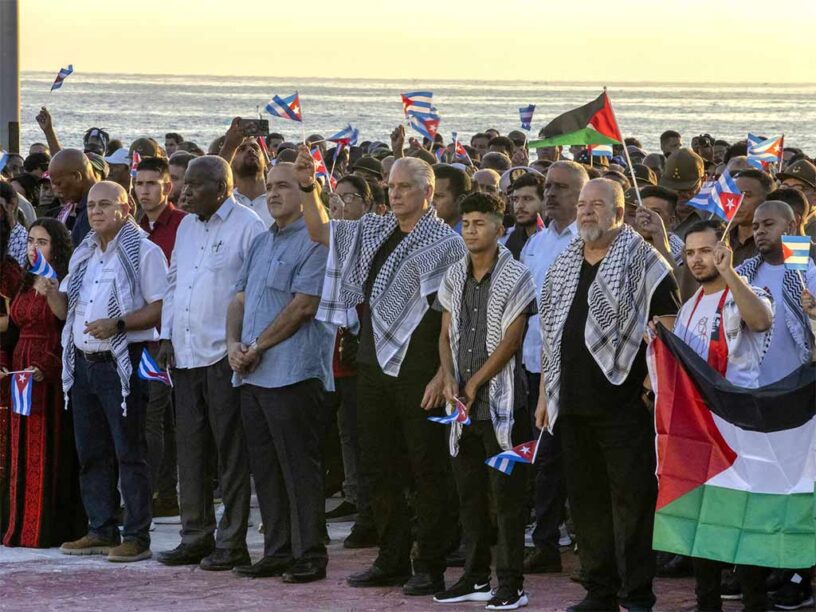 Este jueves, más de 100 mil capitalinos, en representación del pueblo cubano, exigieron el cese del genocidio israelí en Palestina durante una multitudinaria concentración en la Tribuna Antiimperialista José Martí, encabezada precisamente por Díaz-Canel.