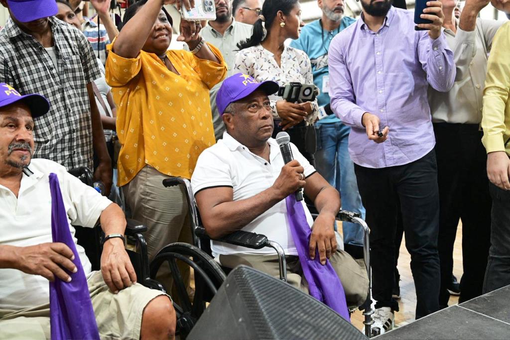 Eustaquio Vargas habló en representación de las personas con discapacidad que fueron a respaldar al PLD en Santiago y dijo que en esta gestión los pobres están pasando una situación muy difícil.