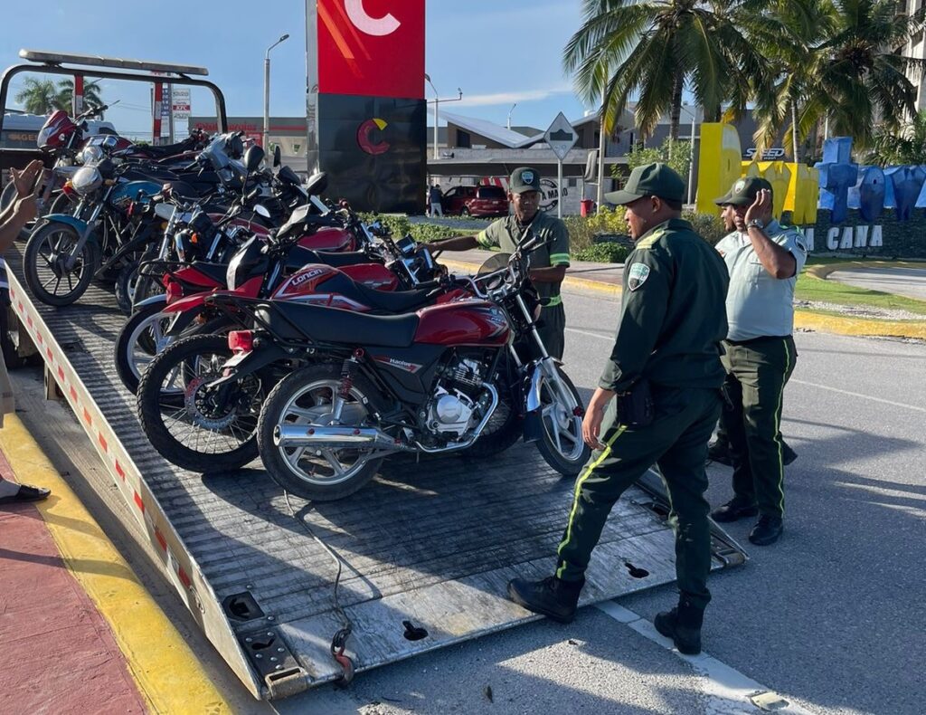 El operativo incluyó también fiscalizaciones por distintas infracciones a la Ley 63-17, donde fueron retenidas 75 motocicletas. Durante las acciones fue retenida una persona en Verón, como parte de los operativos simultáneos desplegados en el área.