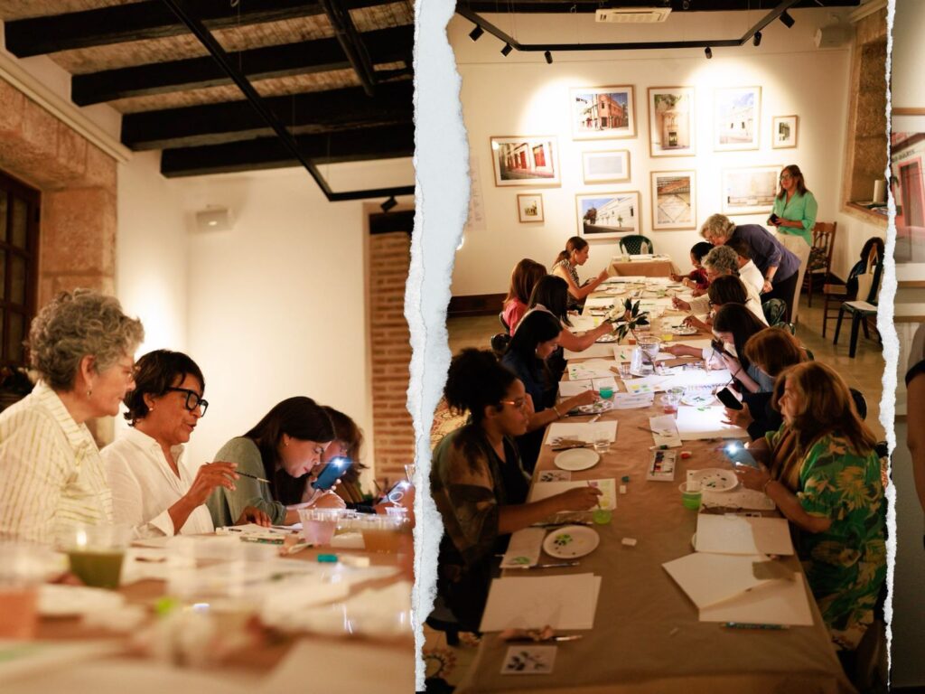 El salón estuvo delicadamente ambientado con magnolias frescas dispuestas al centro: flores reales que los participantes pudieron tocar, oler y observar de cerca. De modo que entre pinceles y pigmentos, cada trazo se convirtió en una forma de diálogo, donde las artistas acompañaron con cercanía y delicadeza, propiciando un clima de aprendizaje y emoción.