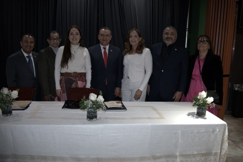 Junto a ellos los directores del Voto en el Exterior, Well Sepúlveda; de Protocolo, Arlen Patricia Regalado, así como la secretaria de la Comisión del Voto en el Exterior, Keila Mateo y Elisa Chevalier, abogada ayudante del despacho del miembro titular Chami Isa.