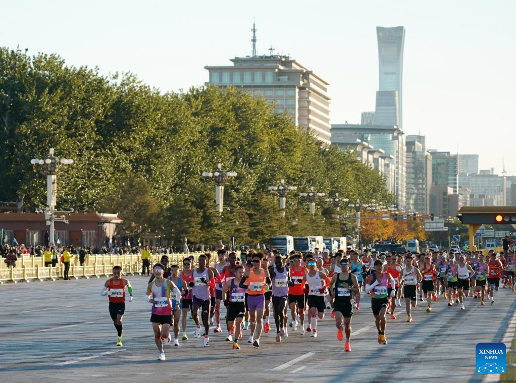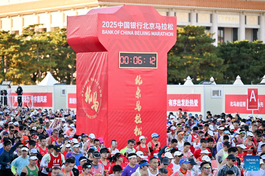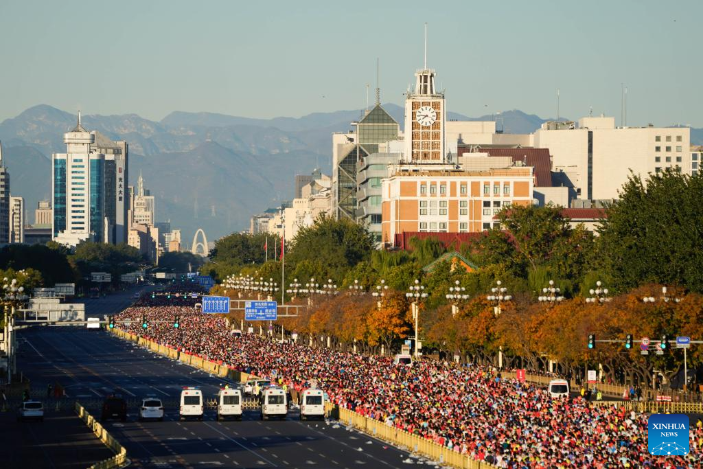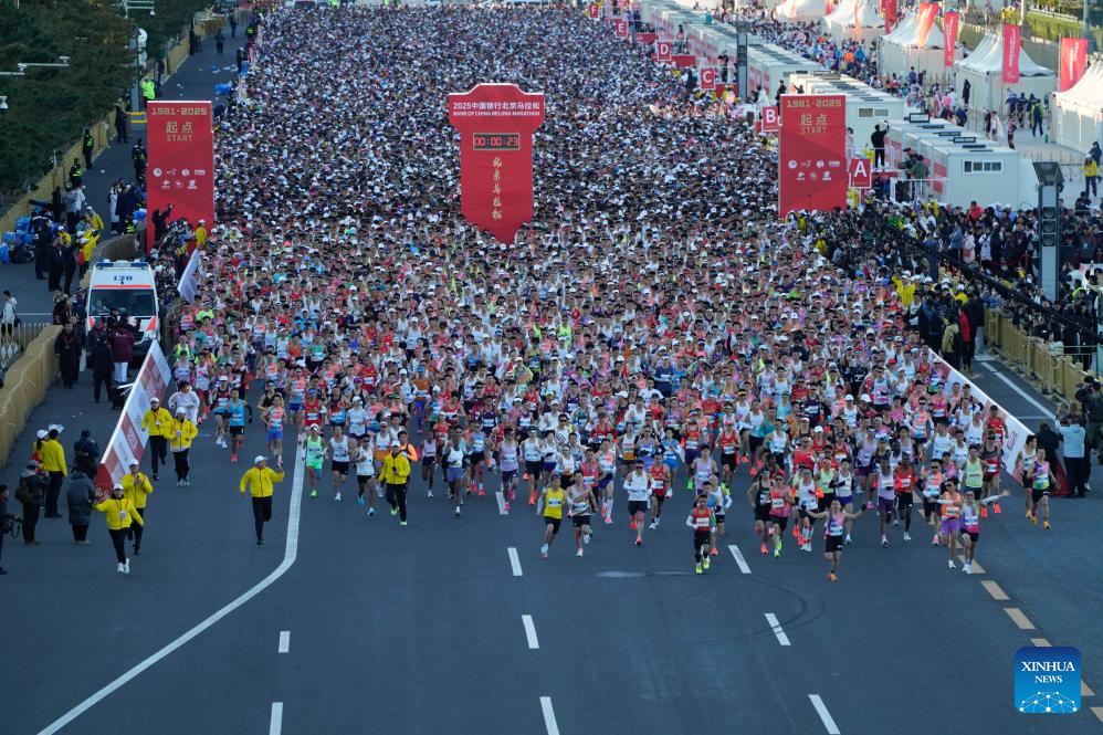 BEIJING, 2 noviembre, 2025 (Xinhua) — Participantes inician el Maratón de Beijing 2025, en Beijing, capital de China, el 2 de noviembre de 2025. (Xinhua/Li Xulun)