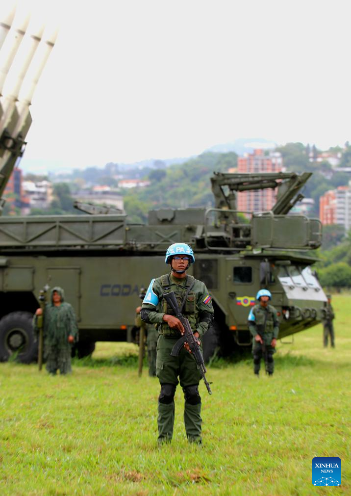 Imagen proveída por el Ministerio para la Defensa de Venezuela de integrantes de la Fuerza Armada Nacional Bolivariana (FANB) participando en los ejercicios militares, en la Base Aérea Generalísimo Francisco de Miranda, en Caracas, Venezuela, el 11 de noviembre de 2025. La FANB de Venezuela inició una «fase superior» de los ejercicios militares denominados Plan Independencia 200, informó el martes el ministro del Poder Popular para la Defensa de Venezuela, Vladimir Padrino López. (Xinhua/Ministerio para la Defensa de Venezuela)