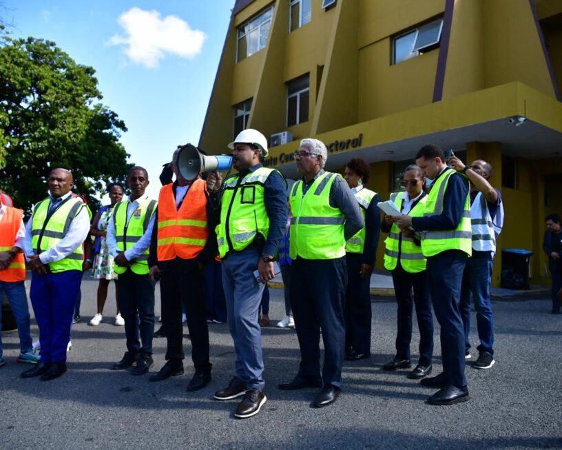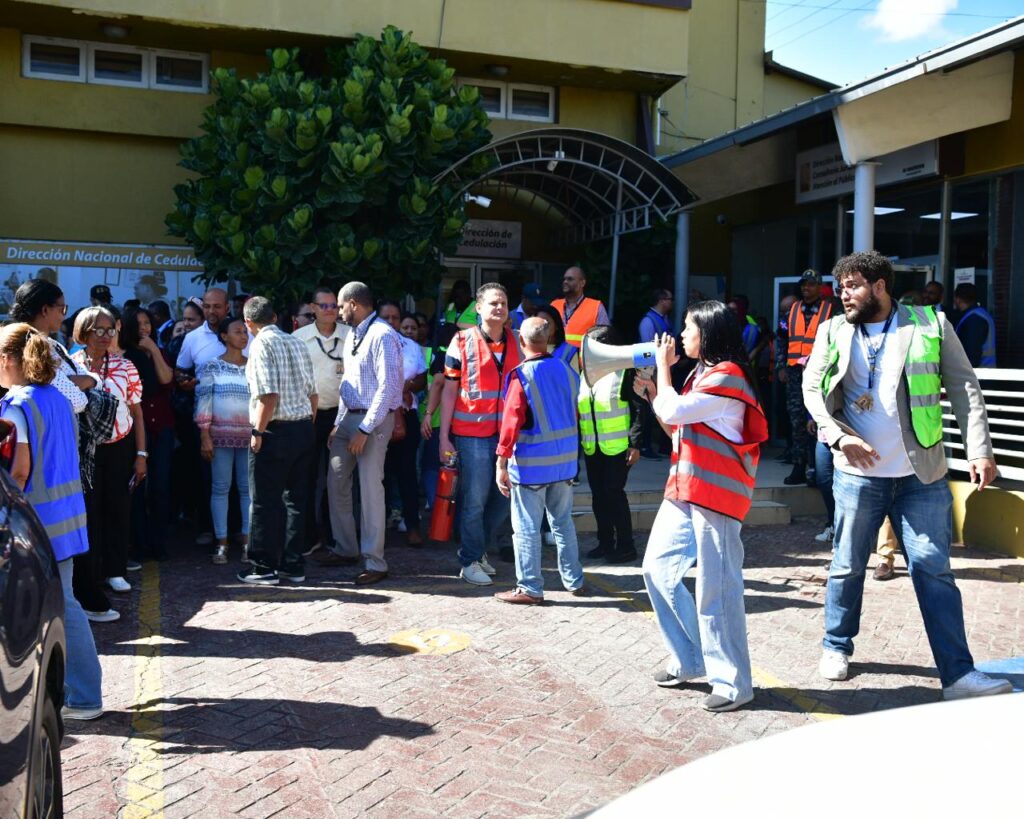 Santo Domingo, RD. – La Junta Central Electoral (JCE) realizó con éxito su cuarto ejercicio del plan de evacuación y simulacro de terremoto. Durante el desarrollo del mismo el personal y usuarios procedieron a salir de los cinco edificios de la sede central tras escuchar la alarma, acción que se ejecutó en aproximadamente cinco minutos.