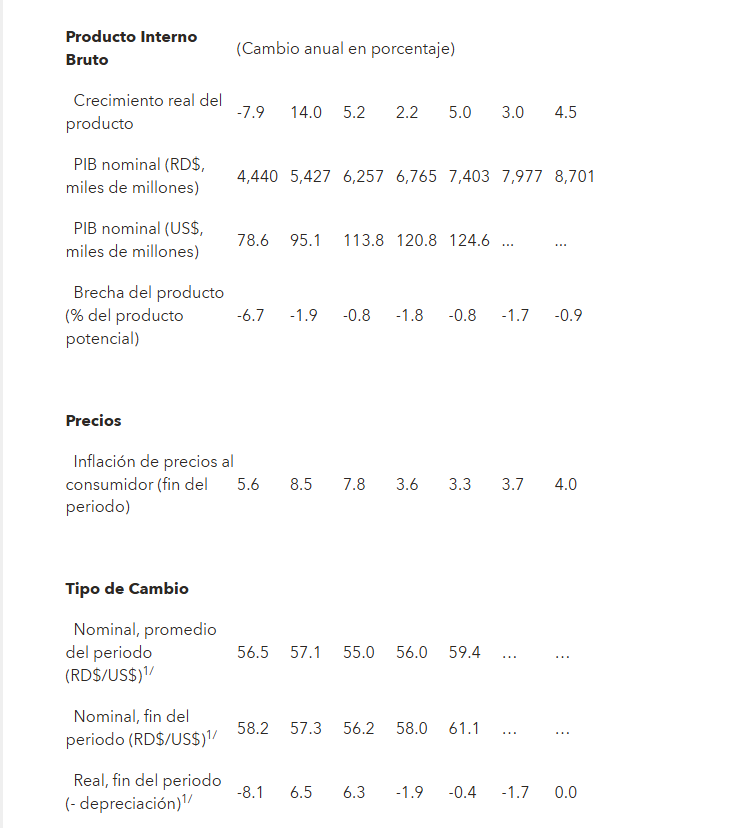El crecimiento económico de República Dominicana se desaceleró a finales de 2024 y el primer semestre de 2025 debido principalmente al aumento de la incertidumbre y a condiciones financieras más restrictivas. Existen indicios preliminares que la actividad económica está repuntando sustentada por el apoyo de las políticas monetaria y fiscal, con el crédito, las exportaciones, y el crecimiento del turismo todos mejorando en meses recientes. La inflación se mantiene cercana a la meta y se espera que promedie 3.7 por ciento en 2025. La posición externa está en línea con los fundamentos económicos y políticas recomendadas. Se espera que el déficit de cuenta corriente se reduzca aún más este año llegando a 2.5 por ciento del PIB, apoyado por la solidez de las exportaciones y las remesas, y que esté completamente financiado por inversión extranjera directa (IED).