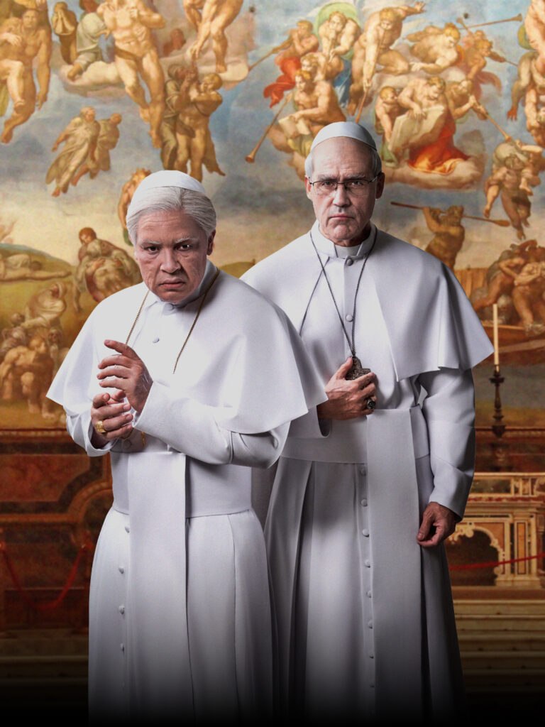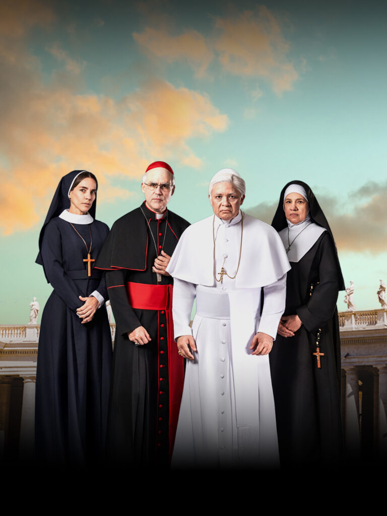 Pepe Sierrainterpreta a Benedicto XVI con una mezcla de solemnidad y vulnerabilidad, mientras José Guillermo Cortínesencarna la humanidad y discreción de Bergoglio. Les acompañan Elvira Taveras y Karina Larrauri, quienes aportan calidez, tensión y matices esenciales en el desarrollo de la historia.