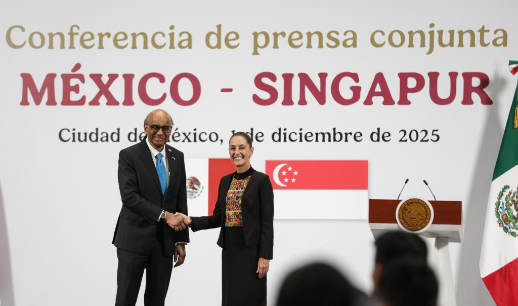 MÉXICO, 1 dic (Xinhua) — La presidenta de México, Claudia Sheinbaum, y su homólogo de Singapur, Tharman Shanmugaratnam, fortalecieron este lunes las relaciones bilaterales con acuerdos alcanzados y el anuncio para formalizar el establecimiento de la Embajada del país asiático en territorio mexicano.
