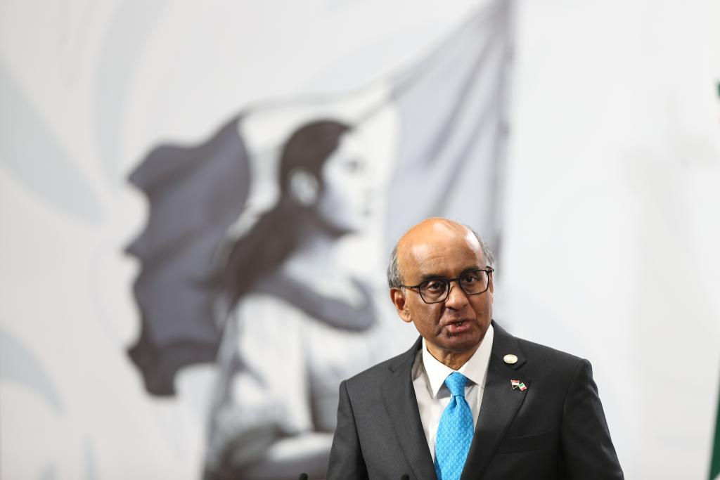 CIUDAD DE MEXICO, 1 diciembre, 2025 (Xinhua) — El presidente de Singapur, Tharman Shanmugaratnam, habla durante una conferencia de prensa conjunta con la presidenta mexicana, Claudia Sheinbaum, en Palacio Nacional, en la Ciudad de México, capital de México, el 1 de diciembre de 2025. (Xinhua/Francisco Cañedo)