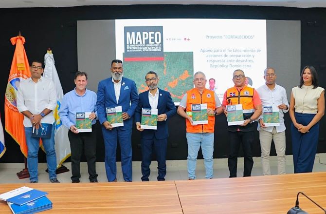 Recibieron oficialmente el mapeo los subdirectores Rubén Frontal, encargado del Sistema Integrado Nacional de Información, y Delfín Rodríguez, encargado de Operaciones, junto al director regional de Santo Domingo, Jesús Vargas, y el titular del Distrito Nacional, Alexander García, reafirmando así el compromiso institucional con la prevención y la preparación de respuesta ante desastres.