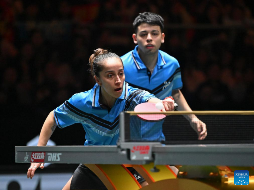 CHENGDU, 2 diciembre, 2025 (Xinhua) — Kuai Man/Lin Shidong (d), de China, compiten en el partido de dobles mixtos ante Nicolás Burgos/Paulina Vega, de Chile, durante la fase 1 del encuentro entre China y Chile en la Copa Mundial por Equipos Mixtos de la ITTF 2025, en Chengdu, en la provincia de Sichuan, en el suroeste de China, el 2 de diciembre de 2025. (Xinhua/Xu Bingjie)