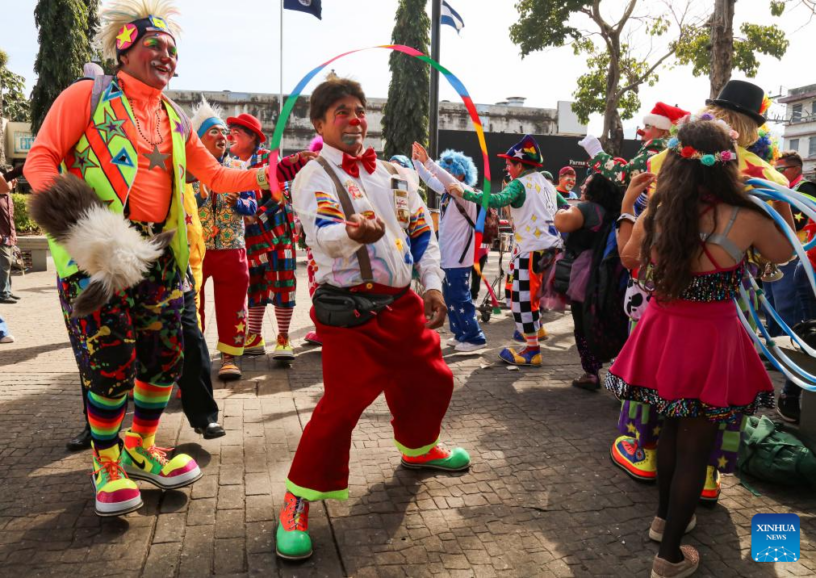 SAN SALVADOR, 3 diciembre, 2025 (Xinhua) — Payasos participan en un desfile durante la celebración del Día Nacional del Payaso Salvadoreño, en el departamento de San Salvador, El Salvador, el 3 de diciembre de 2025. (Xinhua/Alexander Peña)