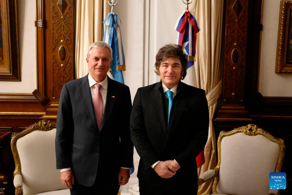 BUENOS AIRES, 16 dic (Xinhua) — El presidente de Argentina, Javier Milei, recibió hoy martes en Buenos Aires al mandatario electo de Chile, José Antonio Kast, a quien felicitó «por el contundente triunfo en la segunda vuelta electoral» realizada el pasado domingo en Chile y le deseó «el mayor de los éxitos en su gestión».