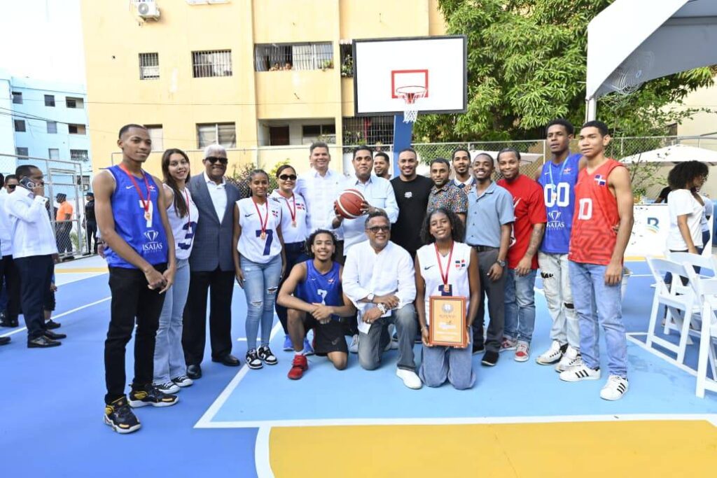 La remodelación de la cancha mixta de Villa Consuelo, donde se practica baloncesto y voleibol, es una de las obras que Banreservas realiza en toda la geografía nacional en beneficio del deporte y la juventud dominicana.