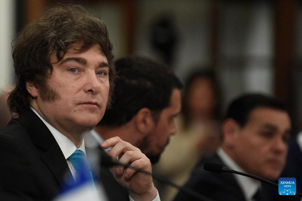 FOZ DO IGUACU, 20 diciembre, 2025 (Xinhua) — El presidente argentino, Javier Milei, asiste a la 67ª Cumbre de Jefes de Estado del Mercado Común del Sur (Mercosur), en Foz do Iguacu, Brasil, el 20 de diciembre de 2025. El presidente de Brasil, Luiz Inácio Lula da Silva, abrió el sábado en la ciudad de Foz do Iguacu, estado de Paraná, la 67ª Cumbre de Jefes de Estado del Mercosur, afirmando que el bloque es un ejemplo de multilateralismo y que «el mundo está ávido por cerrar acuerdos» con él. (Xinhua/Lucio Tavora)