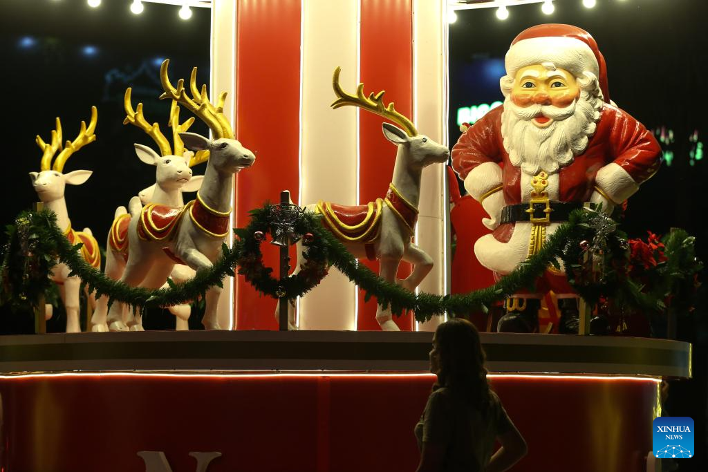 YANGON, 22 diciembre, 2025 (Xinhua) — Imagen del 21 de diciembre de 2025 de decoraciones navideñas vistas en un centro comercial, en Yangón, Myanmar. (Xinhua/Myo Kyaw Soe)