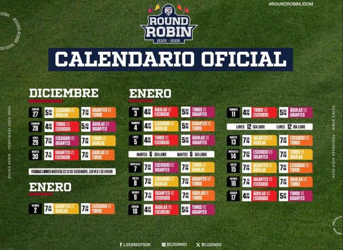 El llamado Round Robin se extenderá hasta el 17 de enero, con pausas programadas los días 31 de diciembre, 1, 6 y 12 de enero, respiros estratégicos dentro de una lucha que promete dramatismo, rivalidades históricas y béisbol de alto nivel.