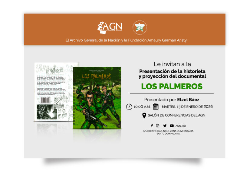 Santo Domingo.– El Archivo General de la Nación (AGN) y la Fundación Amaury Germán Aristy presentarán este martes 13 de enero a las 10:00 am. el documental y la historieta Los Palmeros, en formato gráfico, un importante episodio de la historia nacional.