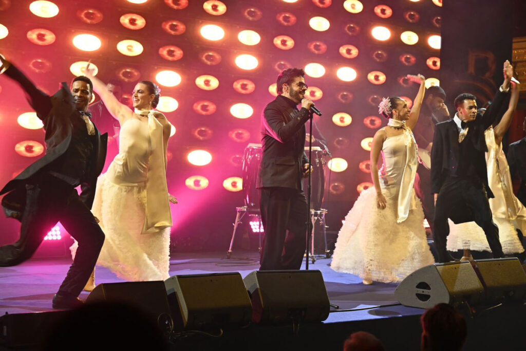 El ambiente del evento reforzó el carácter simbólico del homenaje: desde la explanada del Teatro Real iluminada con los colores de la bandera dominicana, hasta una escenografía interior inspirada en la piedra larimar. Las obras de Cestero acompañaron el recorrido de los invitados por las áreas del recinto, mientras la velada fue amenizada por la música del artista dominicano Manny Cruz, creando una experiencia cultural que celebró el arte, la identidad y el orgullo nacional.