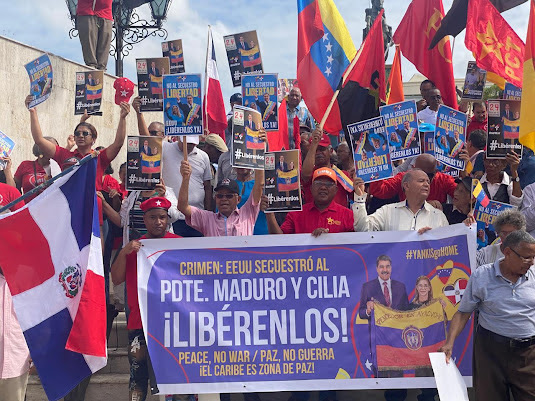 Santo Domingo, RD, 26 de enero de 2026.— En el marco del 213 aniversario del natalicio del Padre de la Patria, Juan Pablo Duarte, y con participación de militantes de izquierda, activistas sociales y representantes de diversas organizaciones políticas y populares de la República Dominicana, se realizó el lunes un Plantón Solidario contra el secuestro por el Gobierno de Estados Unidos del Presidente Constitucional de la República Bolivariana de Venezuela, Nicolás Maduro, y de la Primera Combatiente, Cilia Flores, en la Plaza Simón Bolívar.