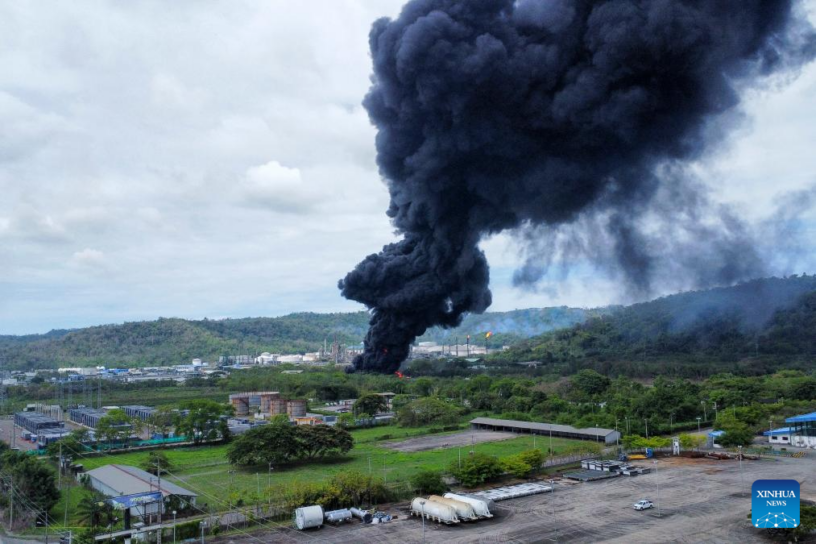 ESMERALDAS, 30 enero, 2026 (Xinhua) — Humo emana durante un incendio ocurrido en una pileta de residuos en el área externa de la Refinería de Esmeraldas, en la ciudad de Esmeraldas, Ecuador, el 30 de enero de 2026. La Refinería de Esmeraldas, el principal complejo refinador de crudo de Ecuador, opera con normalidad tras controlar un incendio ocurrido el viernes, sin reportar heridos ni afectaciones, informó la empresa pública Petroecuador. (Xinhua/Str)