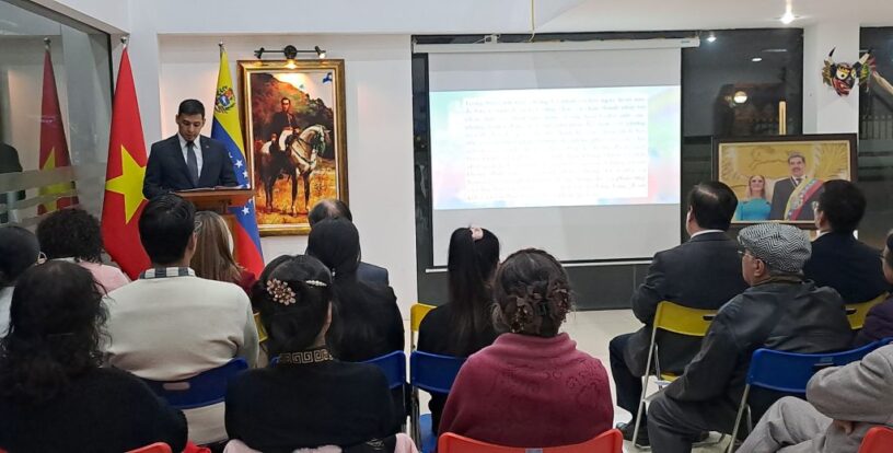 En el acto habló también el presidente de la Asociación de amistad Vietnam-Venezuela, Nguyen Viet Thao, quien repasó las numerosas agresiones sufridas por la República Bolivariana en los últimos 25 años, enfiladas a socavar su soberanía e independencia para satisfacer los objetivos geopolíticos y la sed de pétroleo de Estados Unidos.
