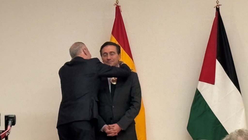 Albares recibió la Estrella al Mérito de la Orden del Estado de Palestina de manos del embajador, Husni Abdelwahed, que fue concedida por el presidente de la ANP, Mahmud Abbás.