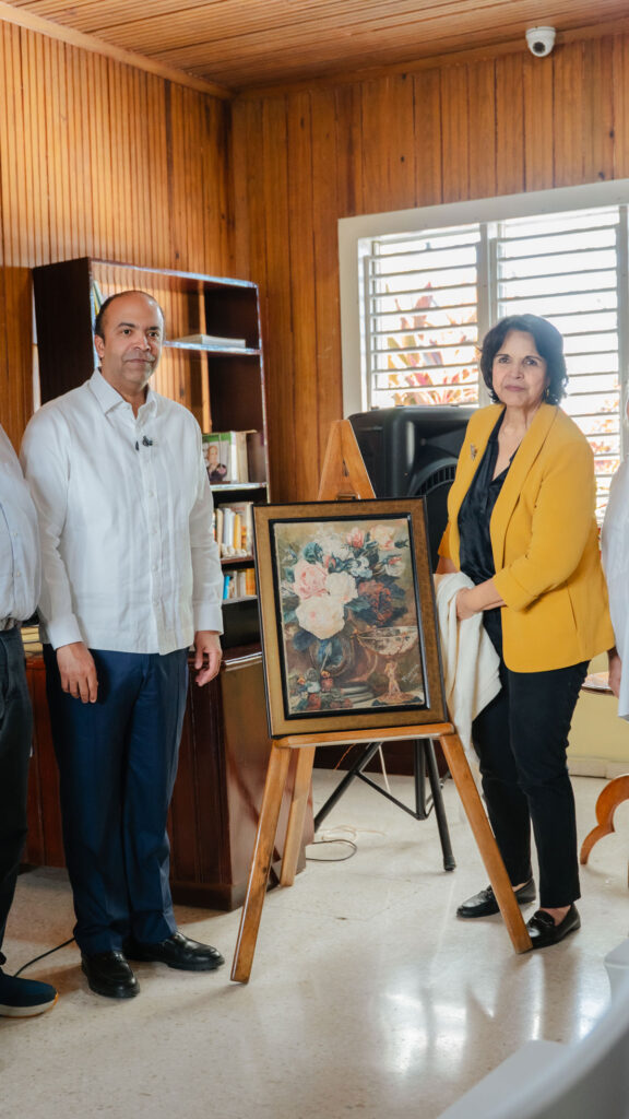 La obra, titulada “Bodegón”, realizada por Minerva Mirabal en 1949 y regalada por su autora a una amiga de infancia, viajó a Madrid y posteriormente a Nueva York, para luego regresar a Santiago durante la pandemia del COVID-19 en 2020. Más adelante fue localizada por amigos de la familia Mirabal y adquirida por Pereyra para su restauración y posterior donación al museo.