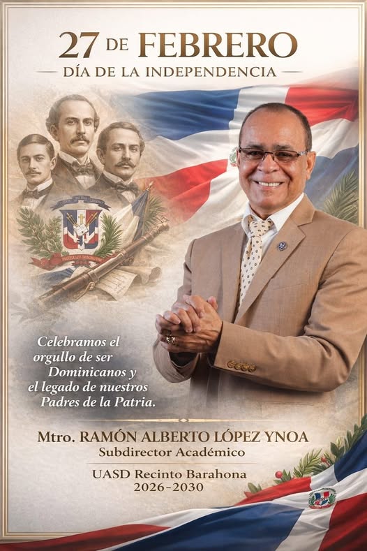 BARAHONA: En el marco de la conmemoración del 182° aniversario de la Independencia Nacional, el Maestro Ramón Alberto López Ynoa, candidato a la Subdirección Académica de la UASD Recinto Barahona para el periodo 2026-2030, emitió un mensaje de exaltación a los valores democráticos y al legado de los fundadores de la República.