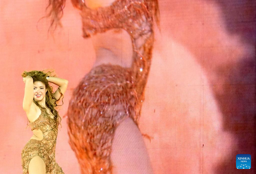 CIUDAD DE MEXICO, 2 marzo, 2026 (Xinhua) — Imagen del 1 de marzo de 2026 de la cantante colombiana, Shakira, realizando una presentación durante su concierto gratuito en el Zócalo de la Ciudad de México, capital de México. (Xinhua/Carolina Endara)